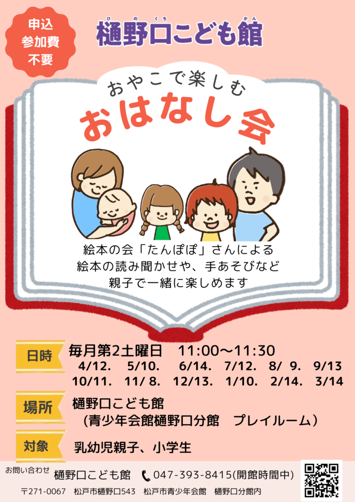 【2026年1/10,2/14,3/14(毎月第2土曜日)】おやこで楽しむおはなし会